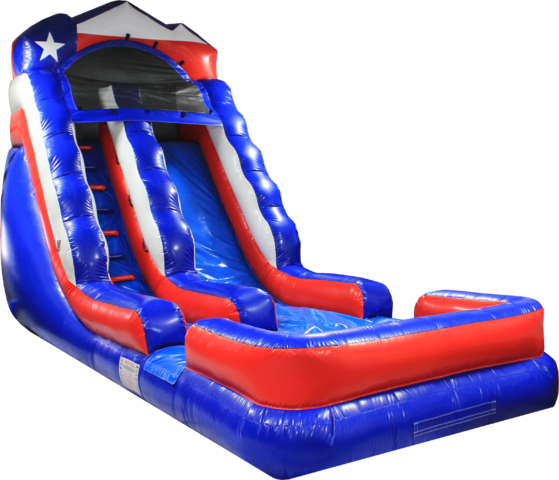 Big Texx is 18ft tall with a splash pad landing. This slide is great for both kids and adults. With it’s bright colors it is sure to stand out at any event. Let Big Texx be the attraction at your next party!